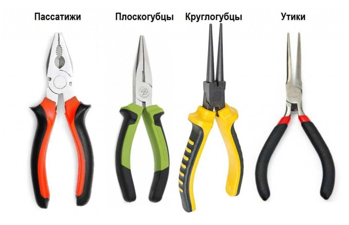 Плоскогубцы полезны для захвата, удерживания и изгибания проволоки или небольших деталей. Кусачки, в свою очередь, помогают отрезать проводку и мелкие металлические детали. Рекомендуется иметь несколько типов, включая: