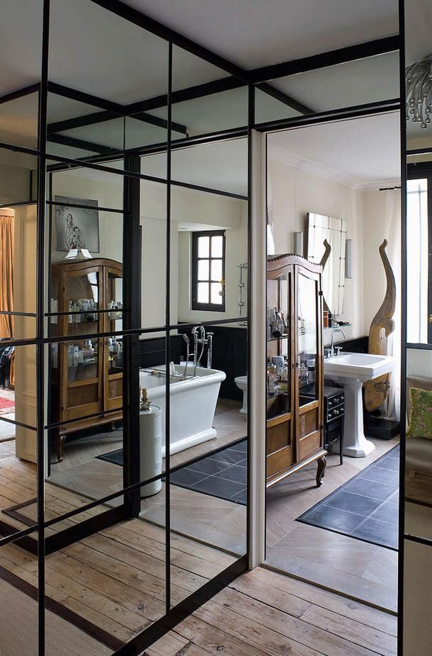 Смиксовав зеркала с открытыми стеллажами, у вас получается возможность отображать любимые предметы и увеличивать пространство одновременно. Используя зеркала, вы можете создать интересные компактные места, где будет удобно находиться, и ваши вещи не будут загромождать пространство.