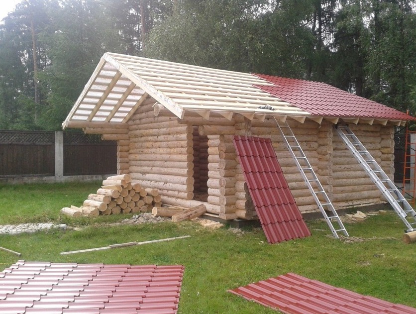 - Укройте крышу выбранным материалом (шифер, металл и т.д.).