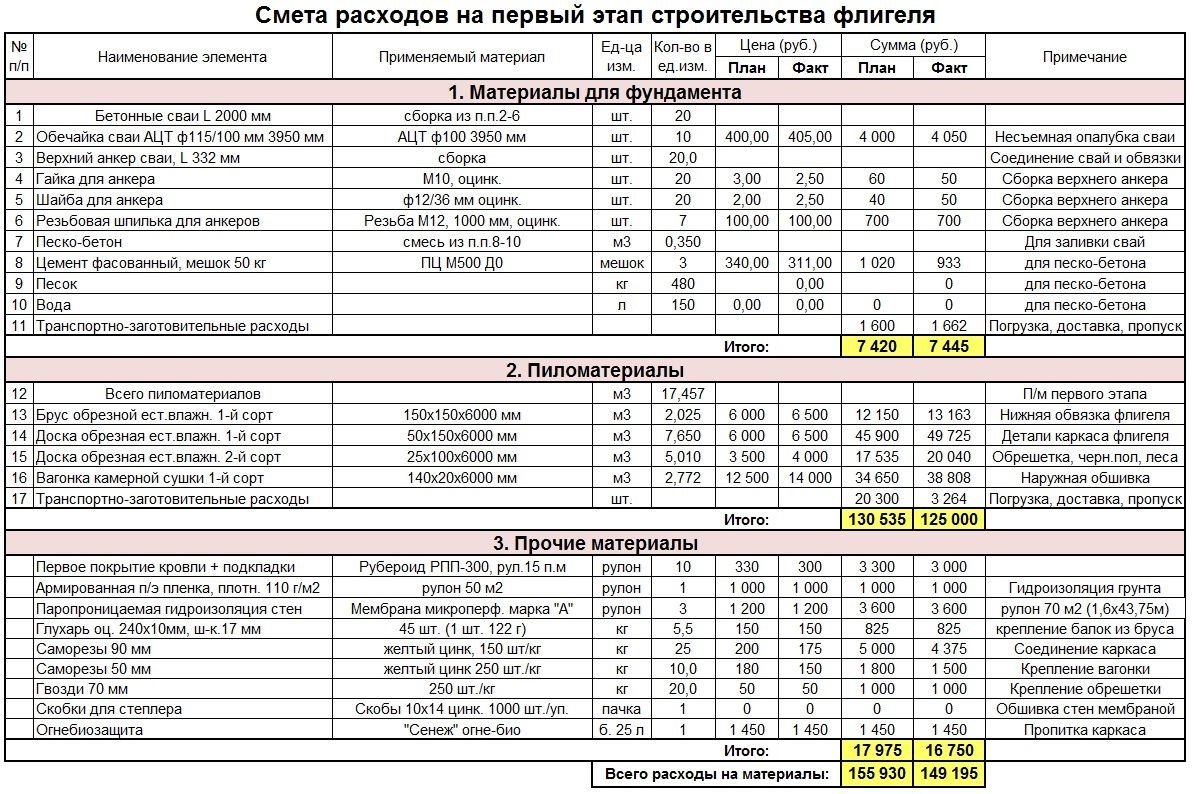 Смета — это документ, который отражает предполагаемые расходы на строительство. Она должна включать следующие статьи:
