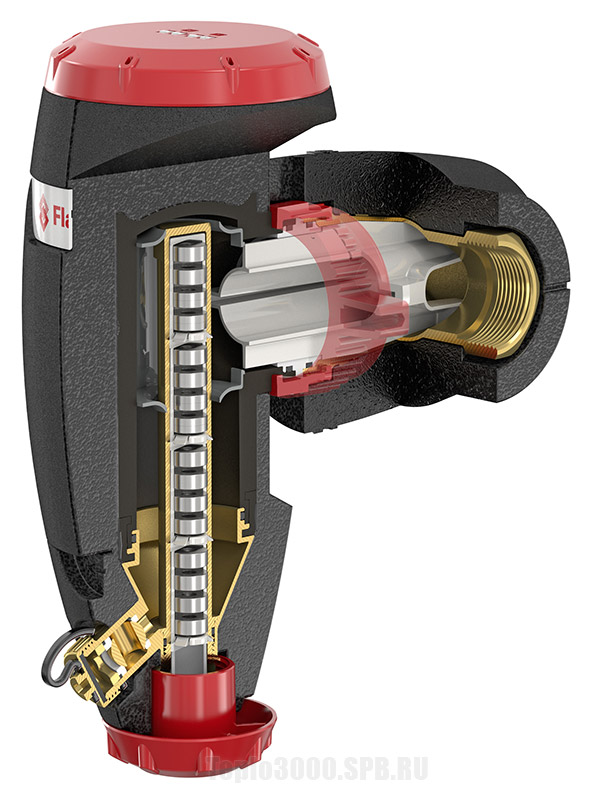 Сепараторы воздуха работают по принципу замедления потока теплоносителя, что позволяет пузырькам воздуха подниматься вверх и выходить через специальный выпускной клапан.