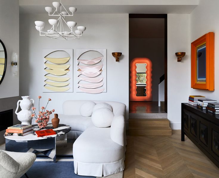 Для смелых решений дизайнеры будут рекомендовать добавление ярких акцентов. Это могут быть кресла, картины, подушки или ковры интенсивных, насыщенных оттенков, что добавит жизненности и динамики в интерьер.