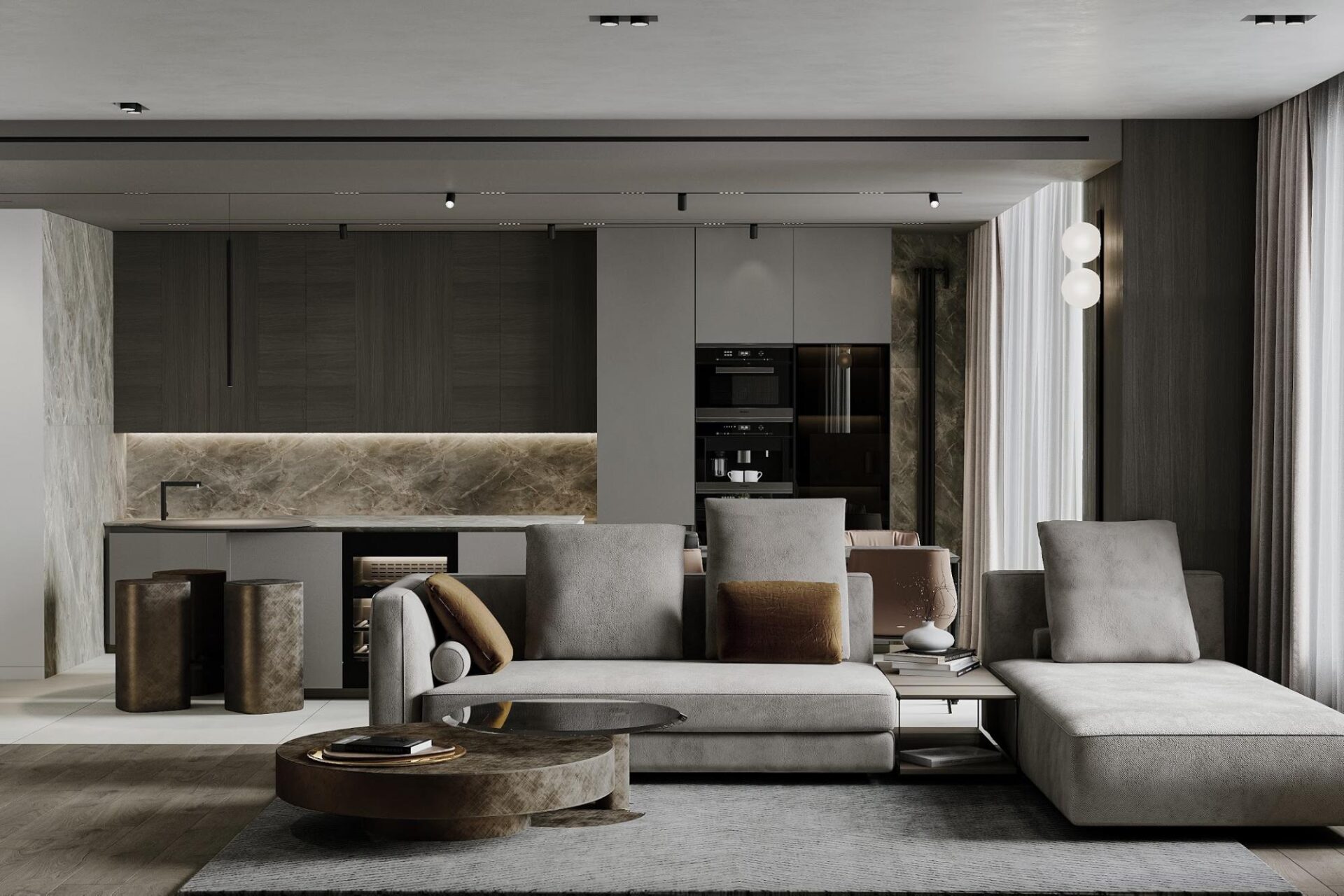 Открытые планировки по-прежнему востребованы, однако они будут эволюционировать. Зонирование с помощью мебели, панелей и декоративных перегородок станет основным приемом для выделения различных функциональных участков в одной комнате.