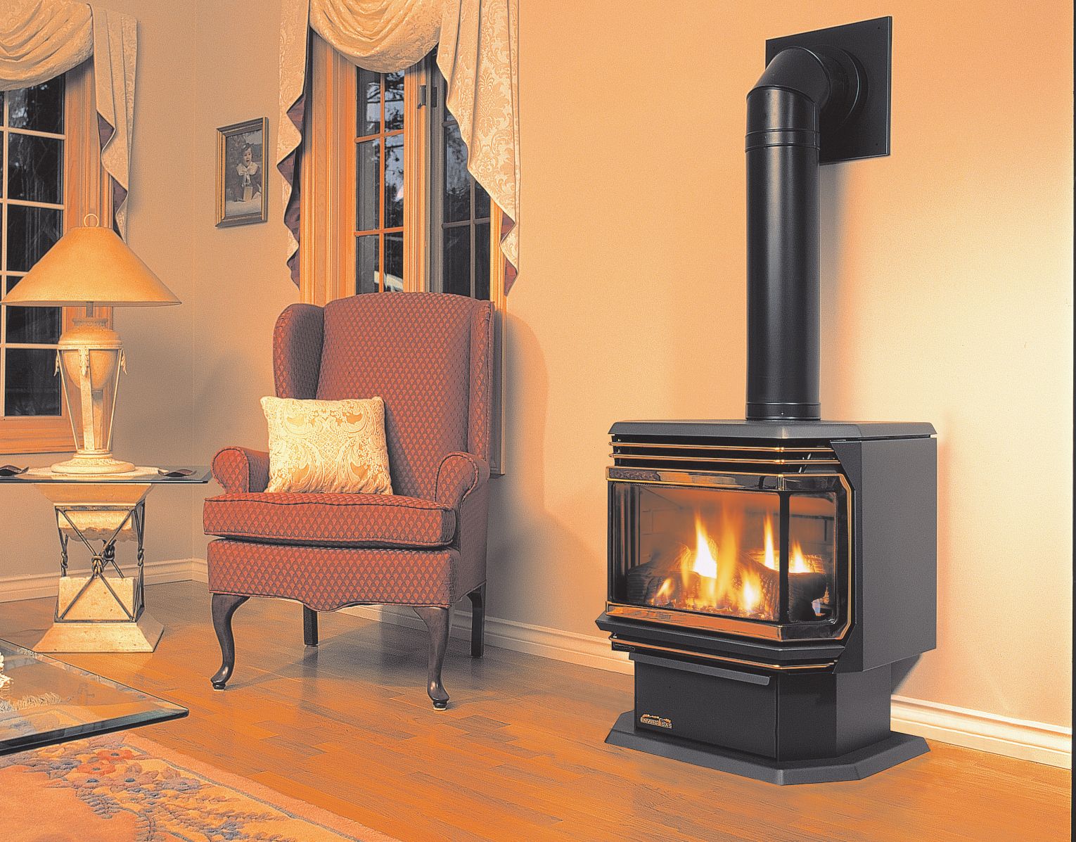 Газовые печи работают на природном или сжиженном газе. Они компакты, современно выглядят и могут эффективно обогревать крупные пространства. Такие печи могут быть как печами с открытой камерой сгорания, так и закрытыми.