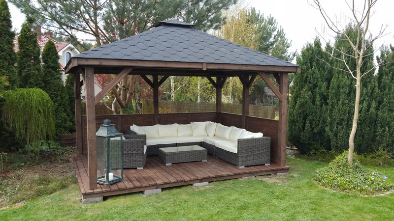 Закрытые беседки сделают вашу дачу более уютной, защищая от непогоды. Они могут быть выполнены из деревянных панелей, стекла или комбинированных материалов. Внутри можно расположить мебель, а также использовать их в качестве зимнего помещения.