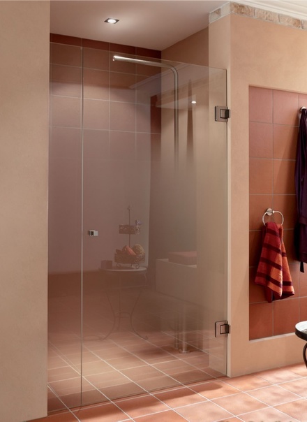 Распашные двери открываются на петлях и могут быть установлены как внутри душевой зоны, так и снаружи.